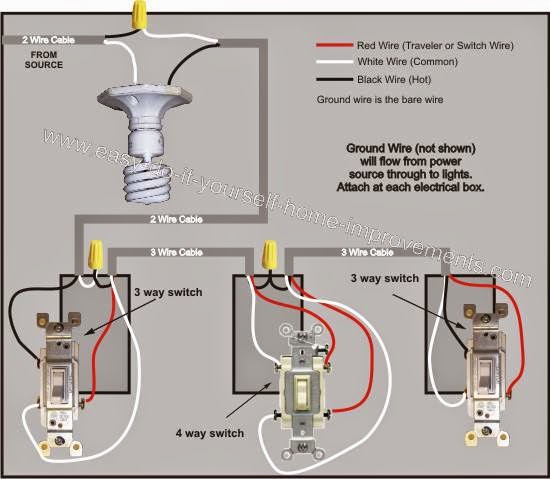 In the ceiling light fixture electrical box one black wire from a 3 way switch gets connected to the black load wire on the light fixture. Wiring a 3 way light switch is certainly more complicated than that of the more common single pole switch but you can figure it out if you follow our 3 way switch wiring diagram. Take a closer look at a 3 way switch wiring diagram. Interested in a 4 way switch wiring diagram. Fixture between two three way switches. Now discussing 3 way light switch wiring diagram as also discussed above the color codes of the wires as having three insulated conductors as black as hot red as switch wire or called traveler and white as common wire as also shown when light is connected to both black and white wires.