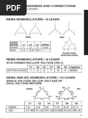 Each lead may have one or more cables comprising that lead. Single phase single voltage 3 lead cw or ccw rotation. Wye connection dual voltage with thermal protector. Motor wiring diagram 9 lead dual voltage wye connection part winding start pws on low voltage to reverse direction of rotation interchange leads l1 l2. All 9 leads motors are most commonly made for dual voltage application this means that the motor was manufactured specifically for dual voltage operation which can be connected in either. In such case each cable will be marked with the appropriate lead number.