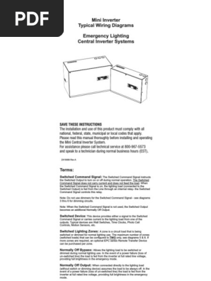 Central inverter basics 2. Typical wiring diagrams emergency lighting wiring diagrams when using a central inverter this document provides fully compliant 2017 nfpa 70 nec article 700 wiring diagrams using a central emergency lighting inverter and ul924 approved emergency lighting control device elcd.