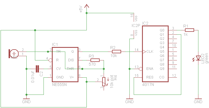 Clap switch circuit diagram using 555 timer. Although its name is clap switch but it can be turned on by any sound of approximately same pitch of. Clap switch is an interesting hobby circuit which turns on the lights with a clap sound. Resistors 1k 47k 100k ohm capacitor 10uf ic7474 more precisely dm74s74n d type flip flop led and battery 5 9v circuit diagram and explanation. In this tutorial we will learn how to make a clap switch circuit using a 555 timer ica clap switch circuit can turn onoff any electrical component by the sound of a clap. It consists of condenser mic to pick sound of the clap and convert from sound energy to electrical energy which is then used to trigger 555 timer output where led is connected. The clap switch circuit is yet another simple and cool project.