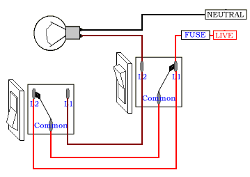 A 2 way switching connection means you can control an electrical equipment like bulb by two switches placed at different places generally used in the staircase. There are a couple of ways in which you can make a two way switch connection.